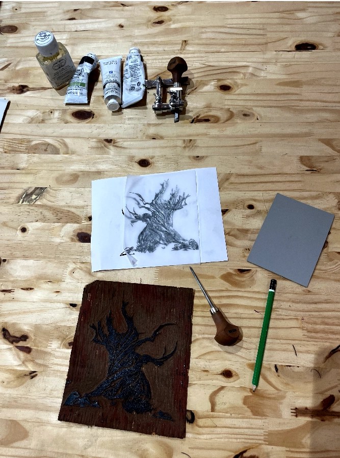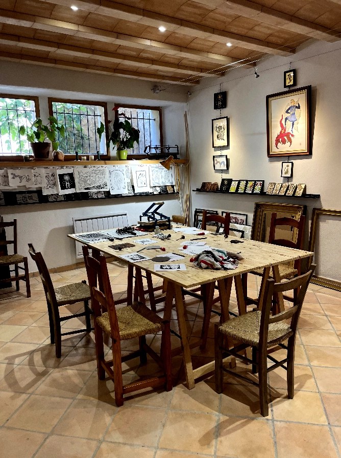 Venez découvrir la linogravure dans mon atelier à Roquecourbe-minervois, je vous y accueille avec tout le matériel nécessaire pour vous faire découvrir cet art.